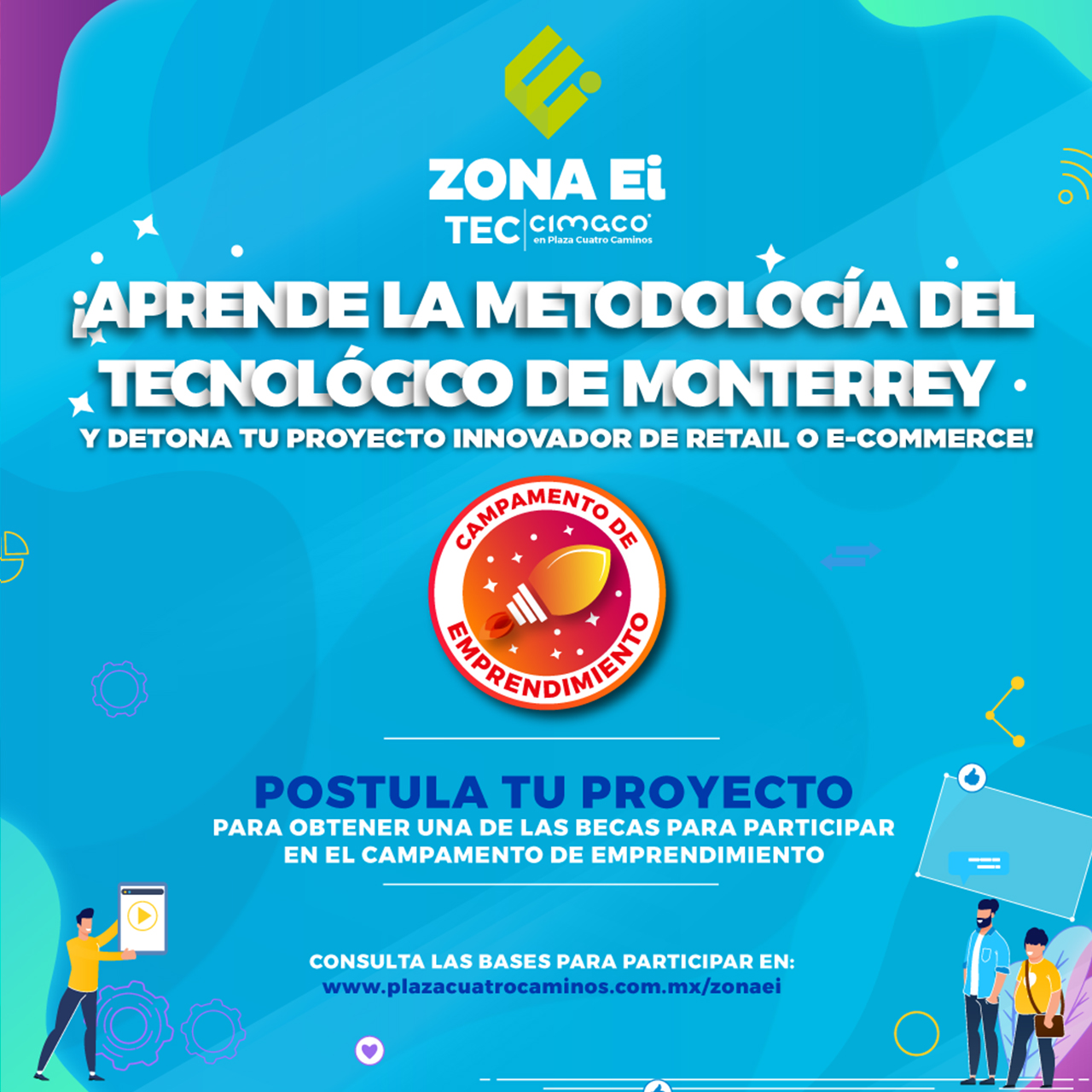 El Tecnológico de Monterrey Campus Laguna y Cimaco convocan a la comunidad emprendedora de la Laguna a ser parte de la Zona Ei Tec-Cimaco en Plaza Cuatro Caminos participando por una de las becas disponibles para el Campamento de Emprendimiento 2020.
